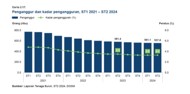 1. Menurut laporan Sorotan Pasaran Buruh Suku Tahun Kedua 2024 (ST2 2024) yang baru di terbitkan oleh Jabatan Perangkaan Malaysia (DOSM):