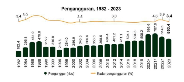 4. Malah, untuk sekian lama, Malaysia telah berjaya merekodkan kadar pengangguran yang rendah dan stabil secara konsisten, tanpa banyak perubahan yang ketara.