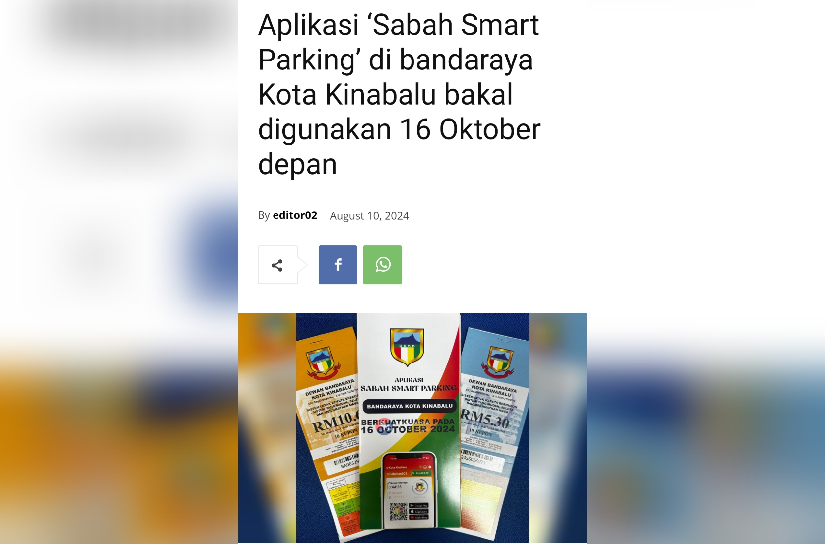 “Berikutan daripada pra pelancaran aplikasi ‘Sabah Smart Parking’ pada 9 Ogos yang lalu, Dewan Bandaraya Kota Kinabalu (DBKK) melalui DBKK Holdings Sdn Bhd memaklumkan bahawa warga Bandaraya Kota Kinabalu boleh mula memuat turun aplikasi ‘Sabah Smart Parking’ secara percuma.