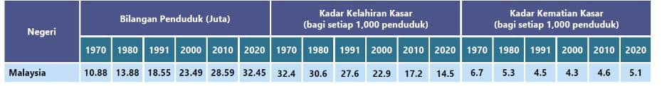 19. Pada masa yang sama, Kadar Kesuburan negara juga telah menurun dari 4.0 orang (1980) kepada 1.8 orang (2020).
