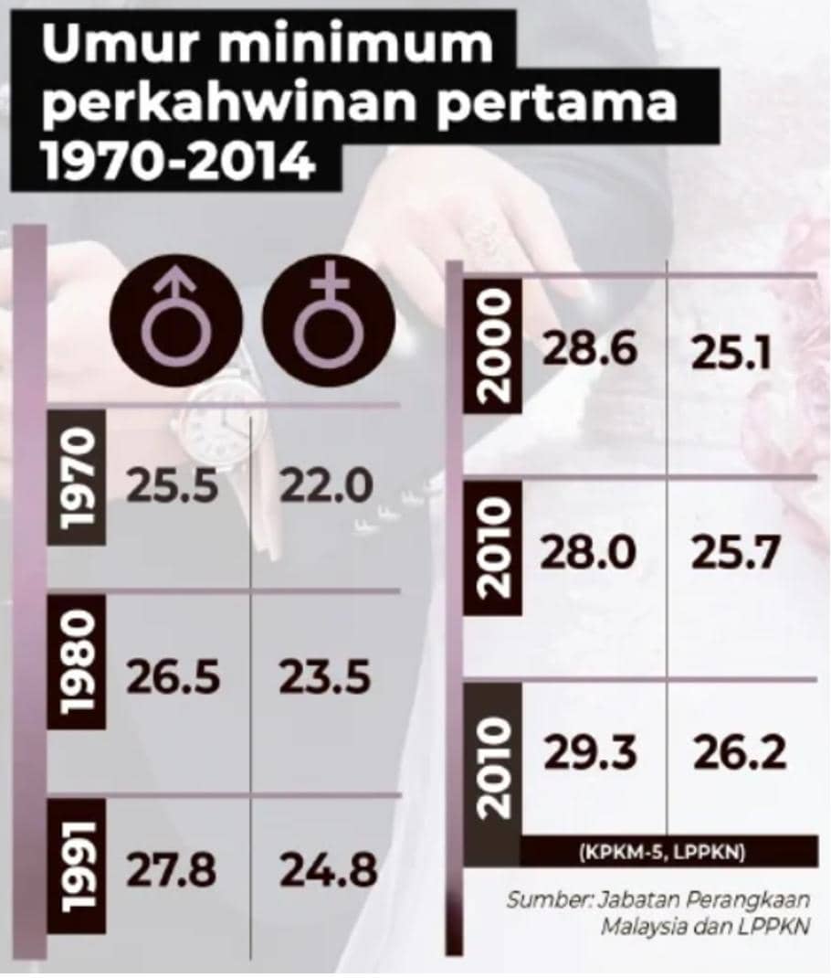 21. Manakala, menurut laporan Lembaga Penduduk dan Pembangunan Keluarga Negara (LPPKN), 3 sebab utama wanita memilih untuk lewat berkahwin adalah: