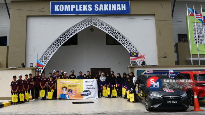 Pasukan dari Maxim di Kota Kinabalu diketuai oleh Ketua Bahagian Maxim Sabah, Nazrin Muis menyumbangkan barangan keperluan dan beberapa aktiviti untuk mengukir senyuman penghuni Rumah Anak Yatim dan Asnaf As Sakinah di Taman Pantai Lok Kawi di sini, hari ini.
