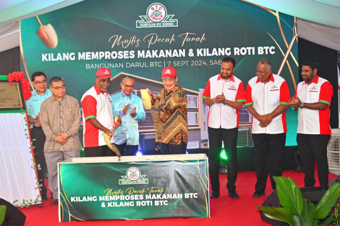 Kota Kinabalu: Ketua Menteri, Datuk Seri Hajiji Haji Noor melakukan simbolik pecah tanah Kilang Memproses Makanan dan Roti Baharu Syarikat Kumpulan BTC Berhad di Bangunan Darul BTC , Jalan Tuaran Bypass, Inanam di sini pagi tadi.