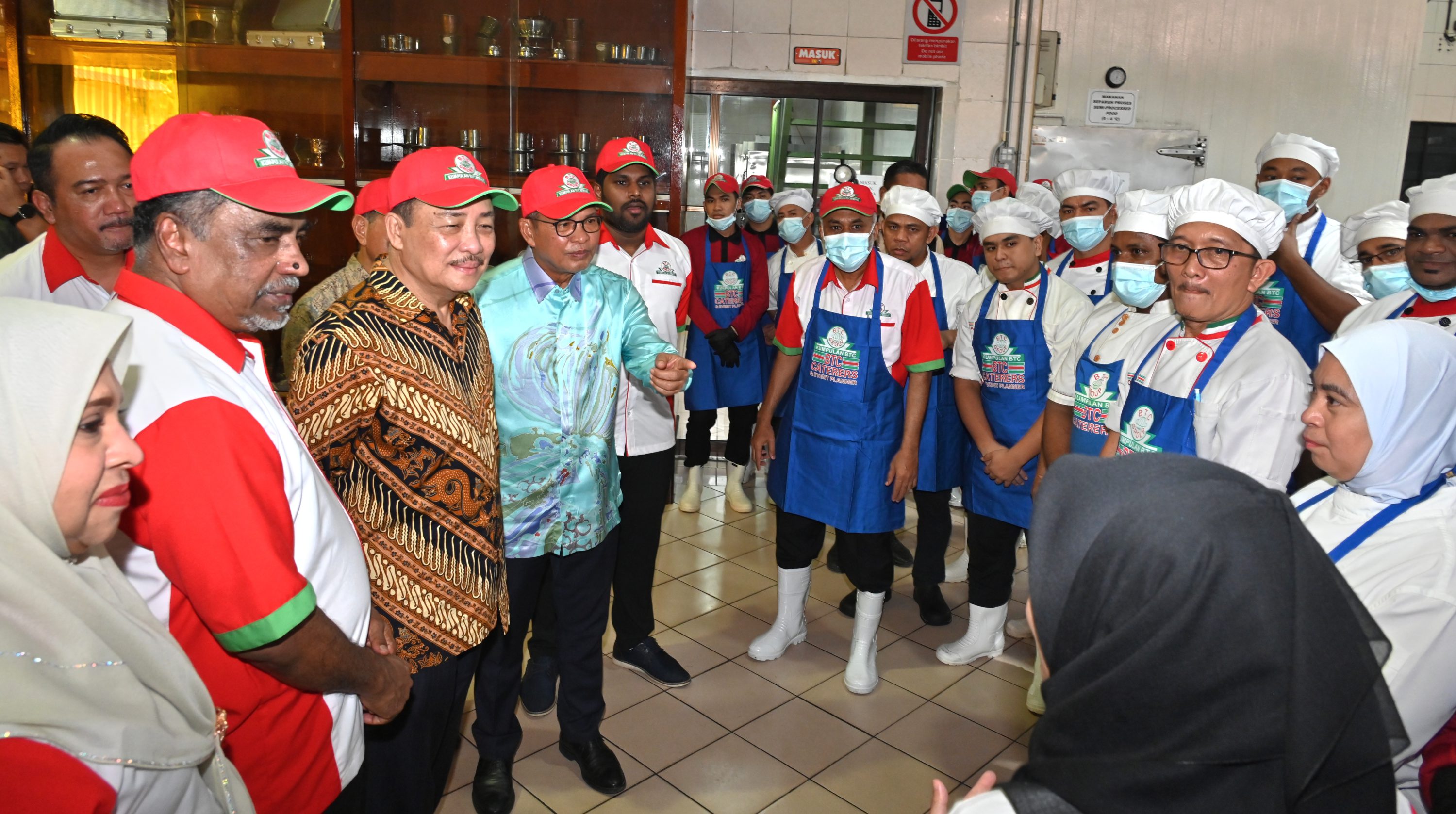 Hajiji yang diiringi oleh Pengarah Urusan Kumpulan BTC Berhad, Datuk Abdul Kadir M.E.Sikkandar dibawa melawat kilang itu dan beramah mesra dengan pekerjanya. – SABAH MEDIA