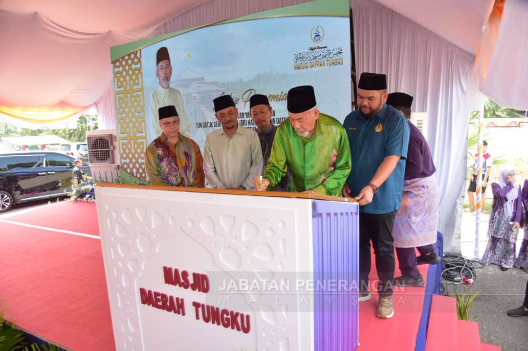 Penyerahan tersebut disampaikan Timbalan Yang Dipertua MUIS, Datuk Malai Ali Malai Ahmad dan disaksikan oleh Yang di-Pertua Negeri, Tun Juhar Mahiruddin yang turut menyempurnakan Majlis Perasmian Masjid Daerah Kecil Tungku.