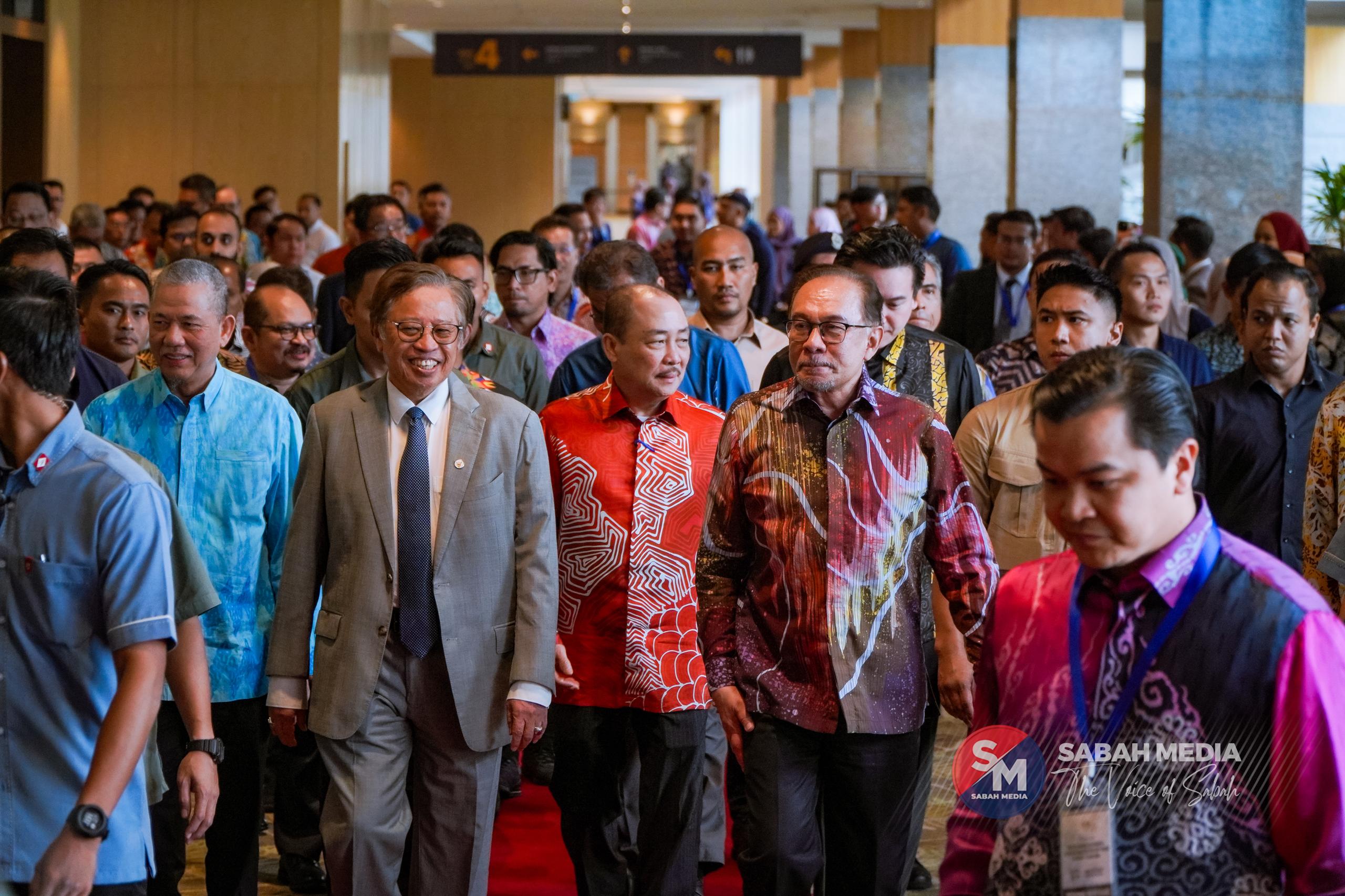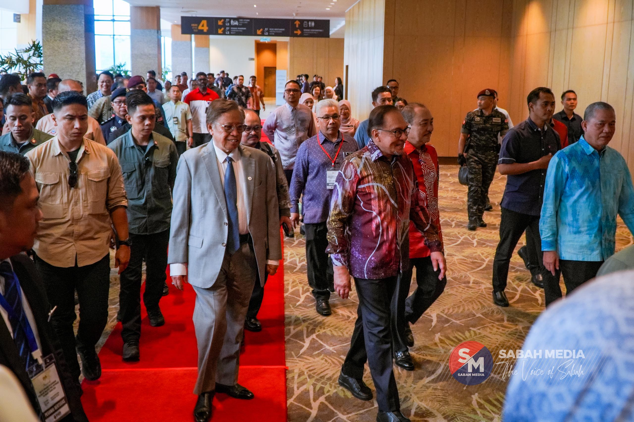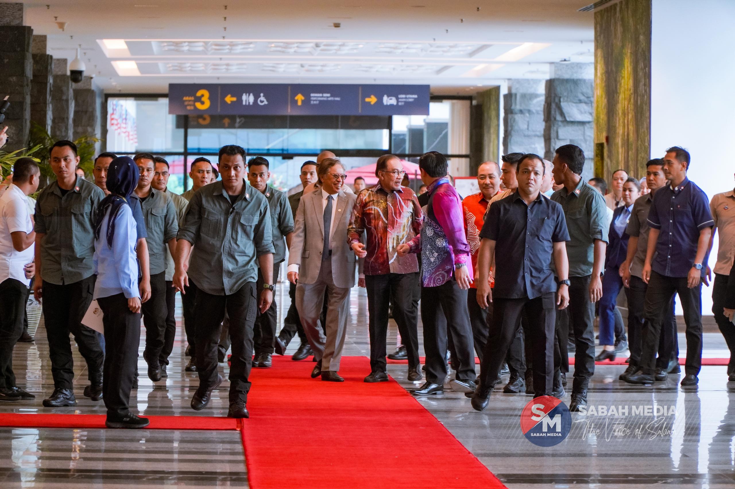 Ketibaan Anwar pada 2.28 petang diiringi Timbalan Perdana Menteri Datuk Seri Fadillah Yusof, Ketua Menteri Sabah Datuk Seri Hajiji Noor dan Premier Sarawak Tan Sri Abang Johari Tun Openg.