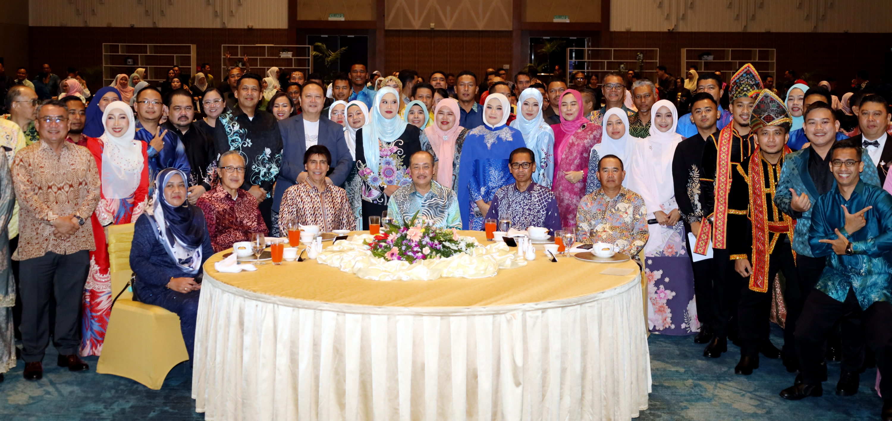 Ketua Menteri Sabah, Datuk Seri Panglima Haji Hajiji Haji Noor bersama warga Jabatan Imigresen Malaysia Negeri Sabah ketika hadir di Majlis Apresiasi Serumpun Kasih Seluhur Budi Jabatan Imigresen Malaysia Negeri Sabah di Sabah International Convention Centre (SICC) pada Rabu.