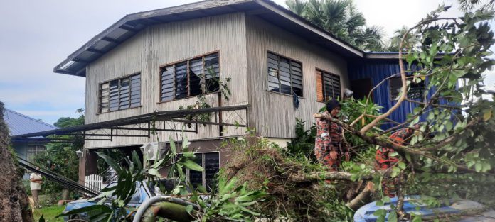 Cuaca ribut petir, angin kencang dan hujan telah berlaku di beberapa buah daerah di Sabah yang turut mengakibatkan berlaku insiden pokok tumbang. – SABAH MEDIA / FOTO JBPM SABAH