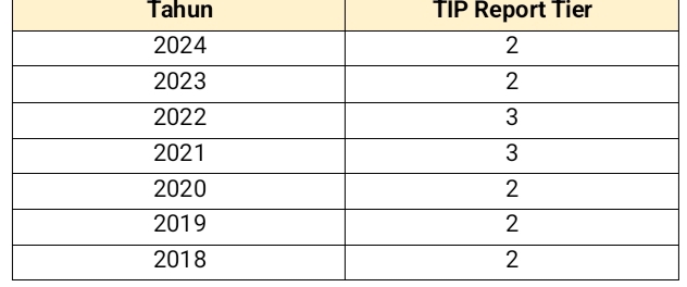 Tier 3 merupakan tahap terendah di dalam TIP Report.