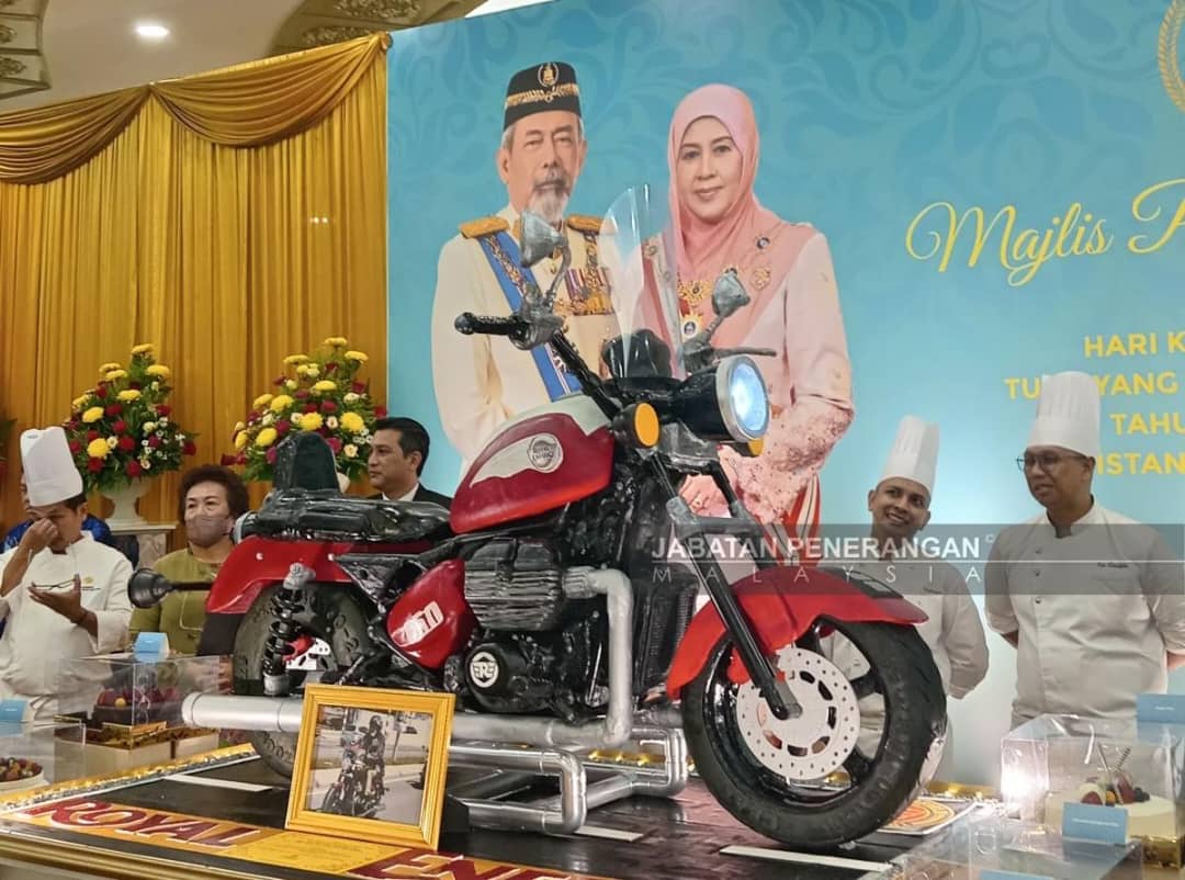 Mencuri tumpuan Tun Juhar dan Toh Puan Norlidah, kek menyerupai motosikal berkuasa tinggi Harley Davidson yang dihasilkan oleh The Magellan Sutera Resort, Sutera Harbour.