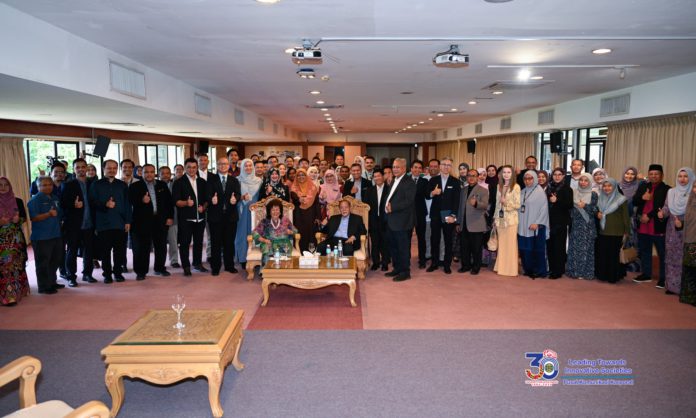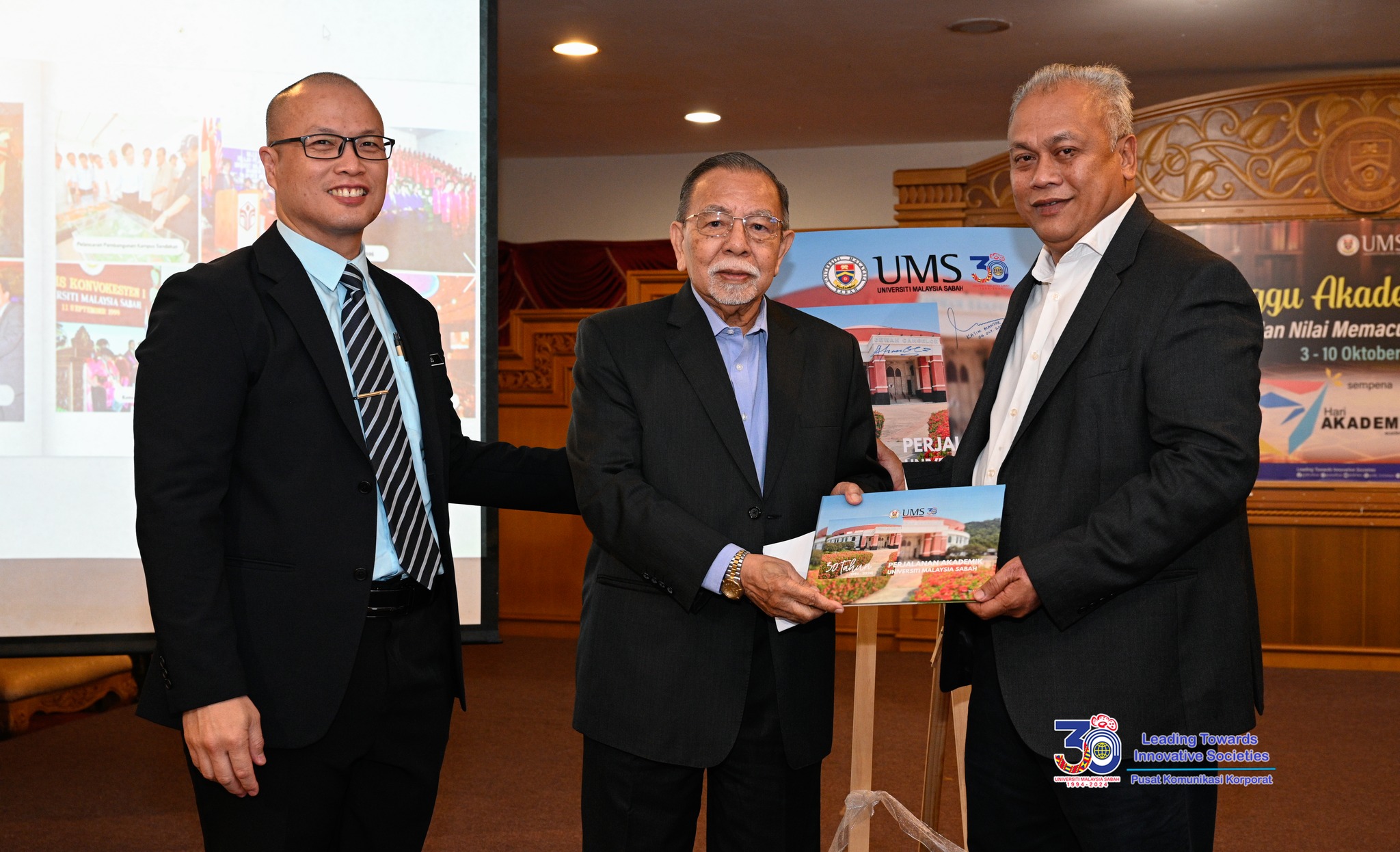 Pada majlis tersebut, mantan Naib Canselor Pertama UMS, Profesor Emeritus Tan Sri Datuk Seri Panglima Dr. Abu Hassan Othman berkongsi pengalaman beliau ketika mentadbir UMS selama sedekad melalui sesi wacana bertajuk ‘Leading Sustainable Change: The Role of Educational Leadership’, selain turut bersama-sama menyempurnakan simbolik perasmian pelancaran Buku Mewah: 30 Tahun Perjalanan Akademik UMS.