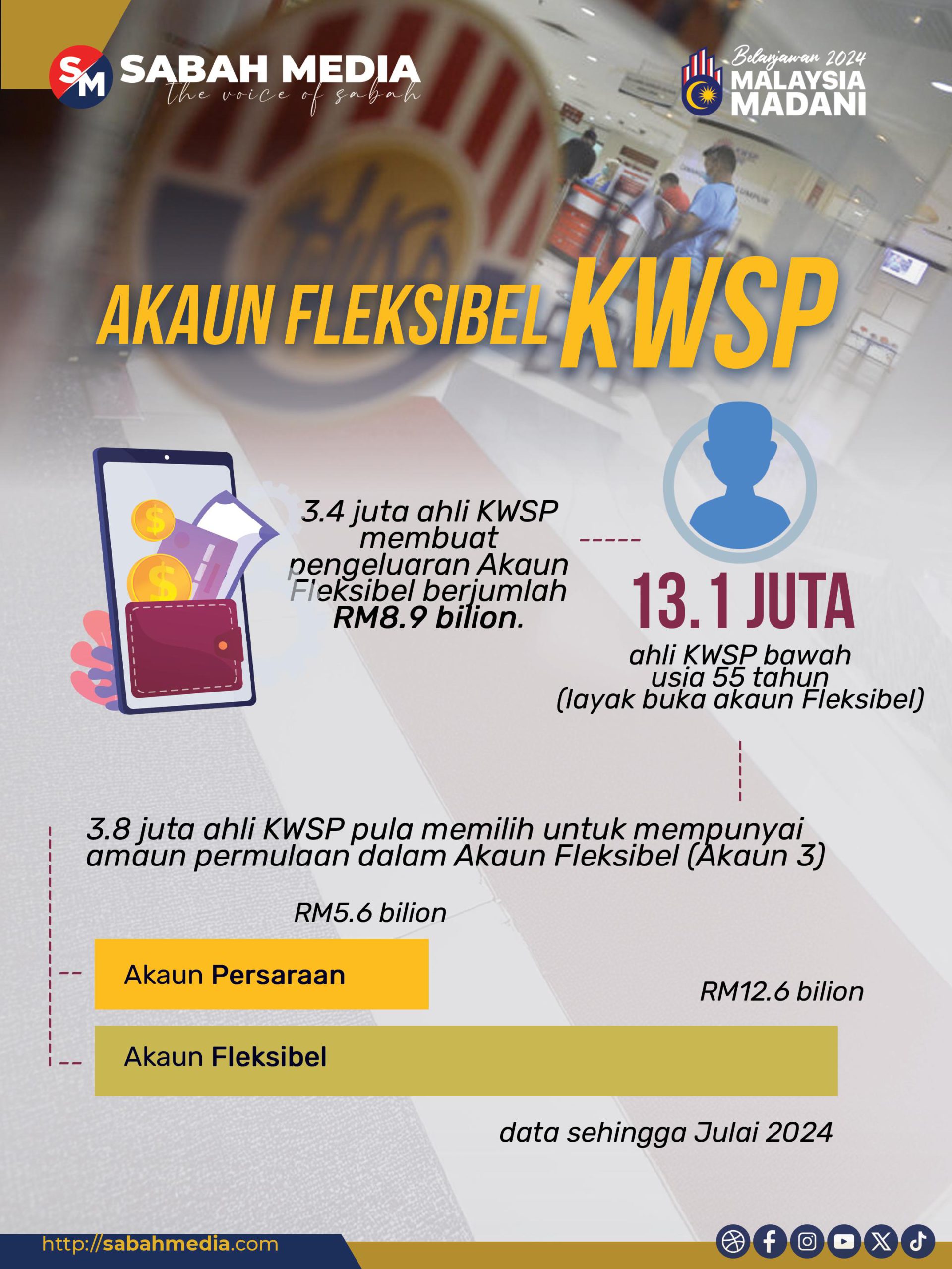 Memetik laporan, sehingga 19 Julai lalu, seramai 3.4 juta daripada 13.1 juta ahli KWSP di bawah usia 55 tahun, membuat pengeluaran Akaun Fleksibel berjumlah RM8.9 bilion.