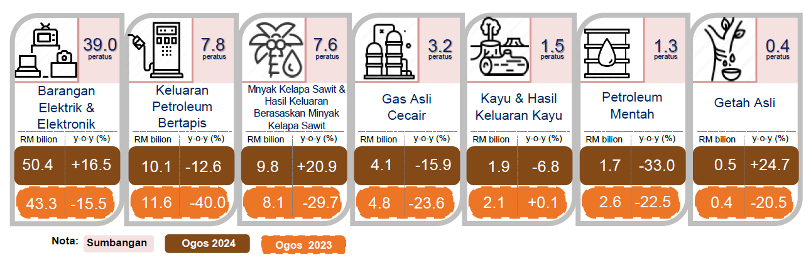 Majoriti pelaburan dalam sektor pembuatan merupakan pelaburan asing, berjumlah RM47.6 bilion atau 64% daripada keseluruhan pelaburan asing dalam tempoh enam bulan pertama 2024. Data daripada Jabatan Perangkaan Malaysia (DOSM) turut menunjukkan bahawa sektor pembuatan terus menyumbang besar kepada eksport negara, dengan RM112.1 bilion (86.8%) daripada jumlah keseluruhan eksport negara pada Ogos 2024. Dari jumlah ini, barangan E&E menyumbang hampir 40% atau RM50.4 bilion.