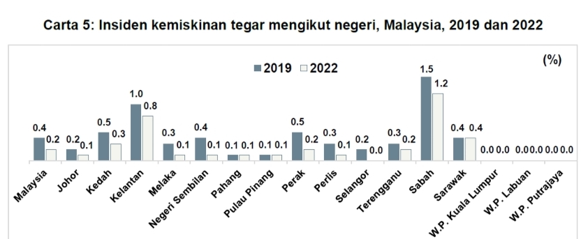 21. Malah, pada Februari 2024, Perdana Menteri Malaysia telah memaklumkan bahawa agenda membasmi kemiskinan tegar di Kuala Lumpur, Negeri Sembilan dan Melaka telah mencapai status 100%. Dan pada Ogos 2024, Ketua Menteri Sabah telah mengumumkan bahawa insiden kemiskinan tegar di Sabah telah berjaya di hapuskan.