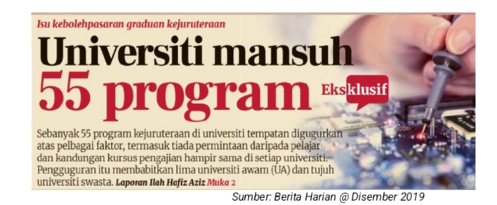 Malangnya, ini bukanlah perkara baru. Beberapa tahun dahulu, media telah melaporkan bahawa 55 program kejuruteraan telah di gugurkan di 12 universiti awam dan swasta dalam negara.