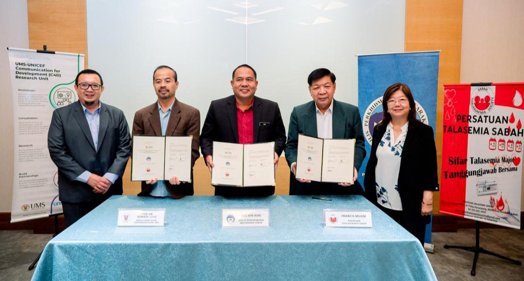 Unit Penyelidikan C4D UMS-UNICEF diwakili Dekan Fakulti Sains Sosial dan Kemanusiaan UMS Prof. Dr. Asmady Idris, manakala MPMS diwakili oleh Pengerusi Pengurusan Jais Asri yang juga Pengarah Jabatan Perkhidmatan Kebajikan Am Sabah.