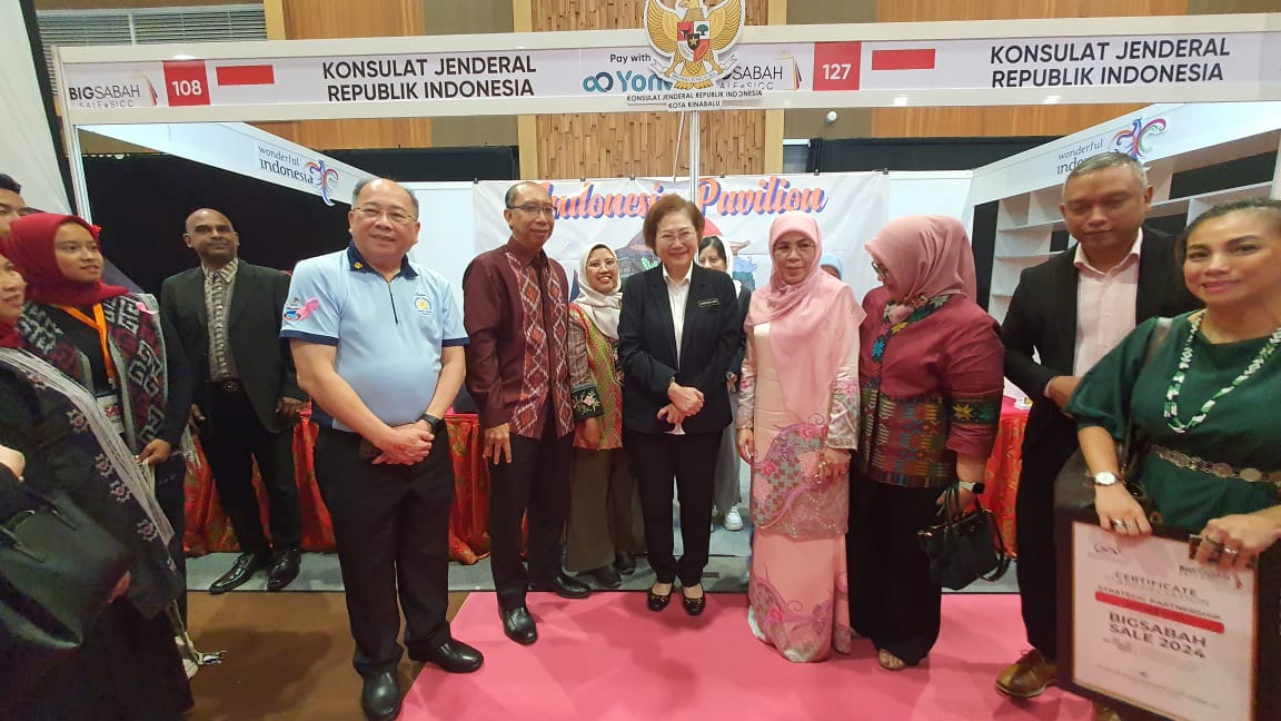 Christina (tengah) diiringi Rosmawati melawat ruang pameran Konsulat Jenderal Republik Indonesia semasa acara BigSabah Sale 2024 di SICC semalam.