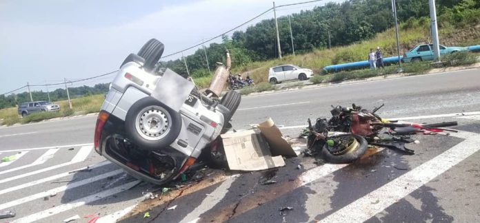 PAPAR: Dua maut dalam kemalangan jalan raya melibatkan seorang pemandu kenderaan Perodua Kembara dan penunggang motosikal berkuasa tinggi dalam kejadian yang berlaku di Jalan Lama Kampung Purak dekat sini pada pagi Ahad (27 Okt).