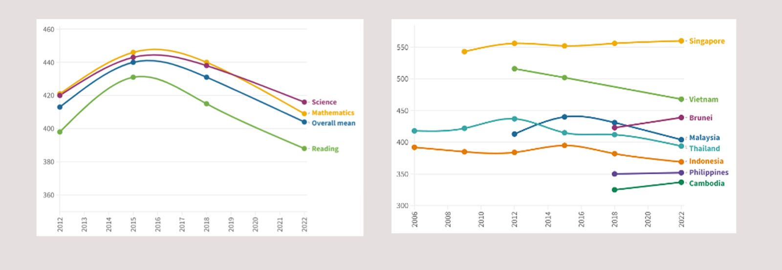 Laporan PISA 2022 melibatkan 81 buah negara, di mana para pelajar di nilai di dalam 3 domain literasi, iaitu: Matematik, Saintifik, Bacaan dan Secara keseluruhannya, prestasi pencapaian pelajar Malaysia merekodkan kemerosotan untuk ketiga-tiga domain literasi tersebut, dan skor purata adalah lebih rendah daripada skor purata OECD.