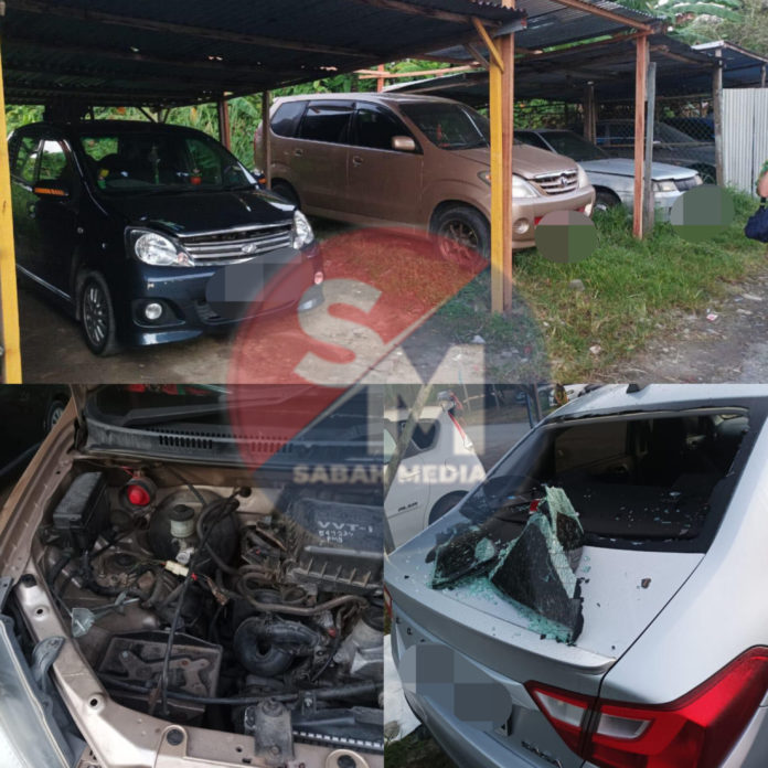 LAHAD DATU: Kira-kira 11 kereta dipecahkan cermin dan kehilangan bateri kereta dalam satu kejadian di Kampung Desa Bajau, Jalan Tengah Nipah dekat sini pada Khamis.