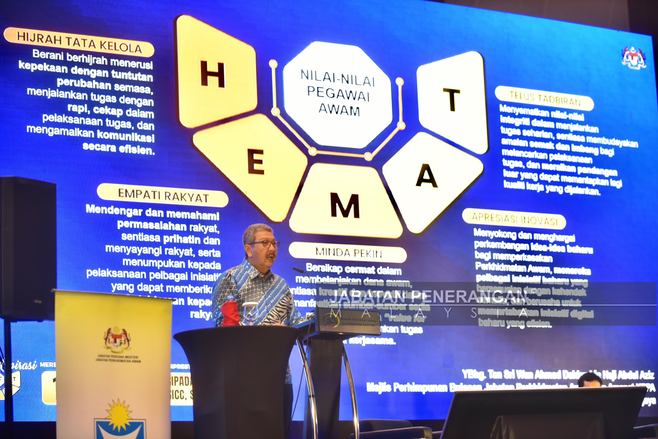 Dalam sesi tersebut, Wan Ahmad menggariskan kepentingan penghayatan nilai MADANI dan MALAYSIA sebagaimana yang disarankan oleh Perdana Menteri sebagai kayu ukur dalam memperkukuh tatakelola sektor awam.