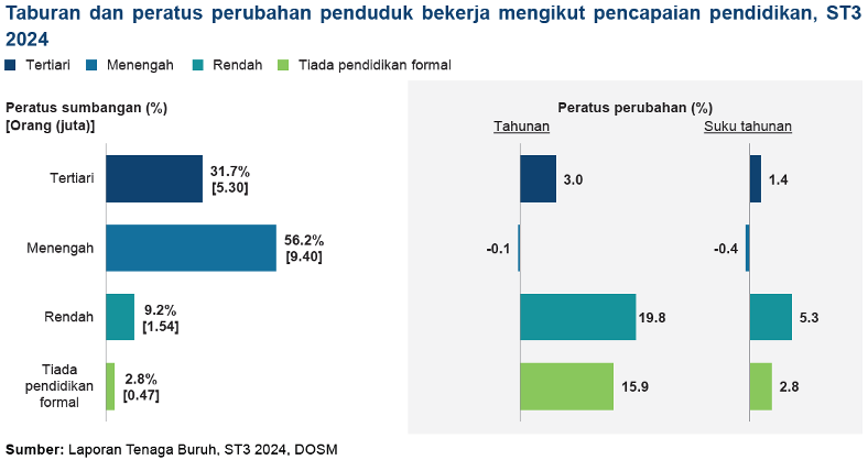 Manakala 2.8% (0.47 juta orang) pekerja pula tidak memiliki pendidikan formal.