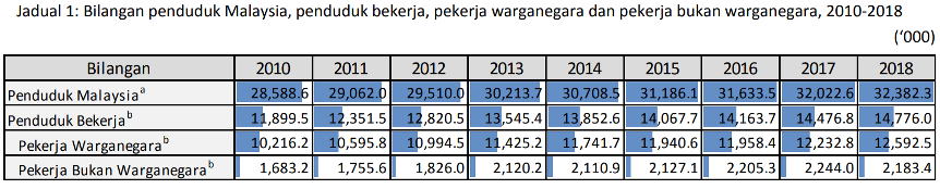 Dalam tempoh masa 1 tahun juga, nampaknya jumlah pekerja asing telah meningkat sebanyak 400,000 orang, dari 2.004 juta orang kepada 2,470,781 orang. (laporan DOSM)