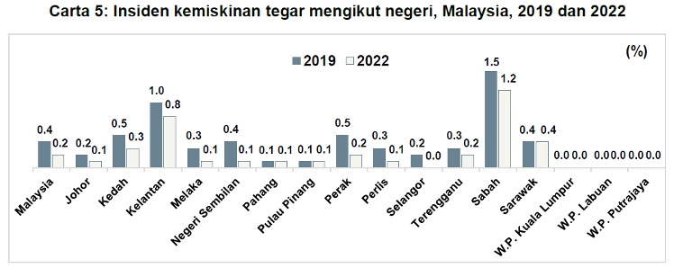 Malah, 4 negeri dan wilayah, iaitu Wilayah Persekutuan Putrajaya, Melaka, Negeri Sembilan dan Perlis, telah merekodkan sifar Miskin Tegar.