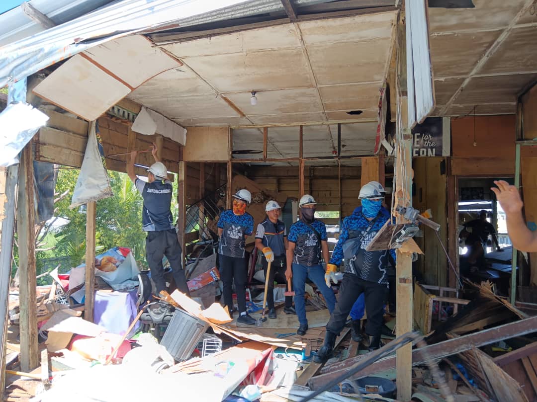 Sebanyak lima aset logistik telah digerakkan bagi membantu operasi perobohan ini yang melibatkan dua buah lori, dua buah van dan satu kenderaan pacuan empat roda.