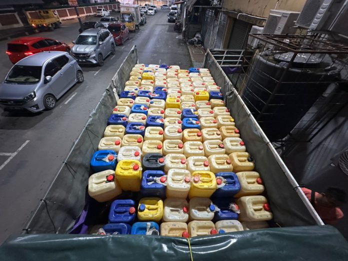“Sebuah lori, 120 jeriken yang mengandungi cecair disyaki minyak Petrol telah disita bagi tujuan siasatan lanjut. Nilai keseluruhan rampasan dianggarkan berjumlah RM 53,369,” katanya dalam kenyataan di sini semalam.