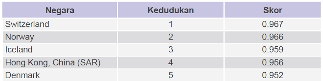 - Indeks Jangkaan Hayat: 0.826 (Sangat Tinggi)