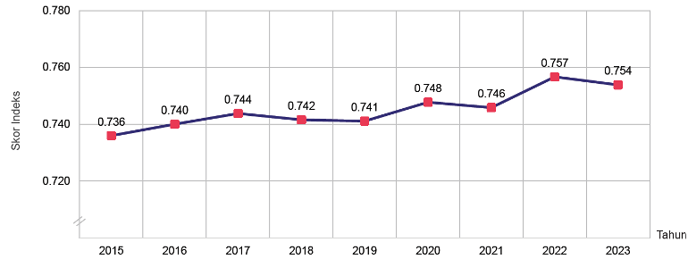 - Indeks Pendidikan: Menurun 0.003 mata dari 0.757 (2022) kepada 0.754 (2023). Meskipun terdapat penurunan, ia menunjukkan peningkatan jangka panjang dari 0.736 kepada 0.754 dalam tempoh lapan tahun.