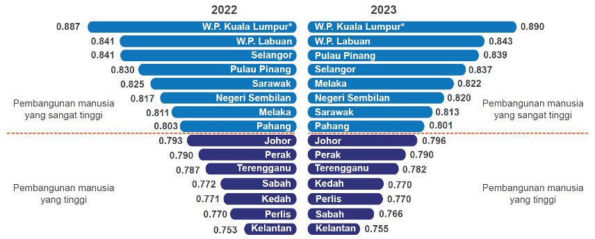 Tahap pembangunan rakyat Malaysia pada tahun 2023 menunjukkan pencapaian yang lebih baik, membawa kepada peningkatan kesejahteraan hidup rakyat. Hal ini berdasarkan laporan Indeks Pembangunan Rakyat Malaysia 2023 (MHDI) yang diterbitkan oleh Jabatan Perangkaan Malaysia (DOSM) pada Disember 2024.