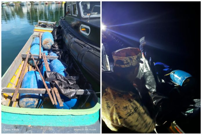 “Pemeriksaan lanjut terhadap bot suspek telah menemui lebih kurang 12 tong drum biru dipercayai berisi bahan api petrol.