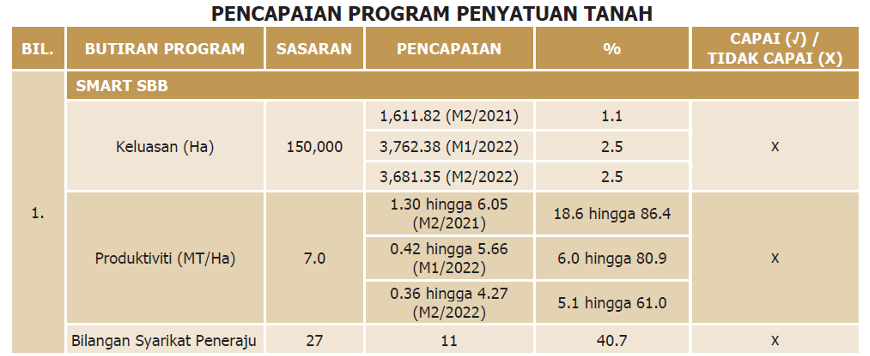 Sejak beberapa tahun kebelakangan ini, pelbagai pihak mengkritik keupayaan KPKM dalam mengurus industri padi dan beras secara telus dan berkesan. Laporan Ketua Audit Negara 2022 (LKAN 2022) menunjukkan bahawa program Smart Sawah Berskala Besar (SMART SBB) gagal menarik penyertaan petani, dengan hanya 2.5% daripada sasaran 150,000 hektar yang berjaya dicapai.