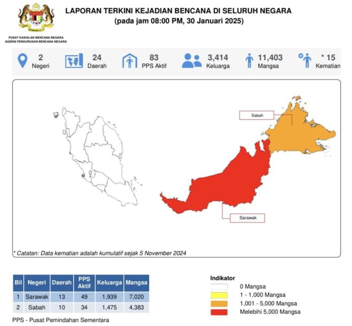 Putrajaya — Perdana Menteri, Datuk Seri Anwar Ibrahim mengarahkan Agensi Pengurusan Bencana Negara (NADMA) memperkemas penyelarasan seluruh kekuatan jentera agensi persekutuan dan negeri berikutan situasi banjir semakin buruk di Sabah dan Sarawak.