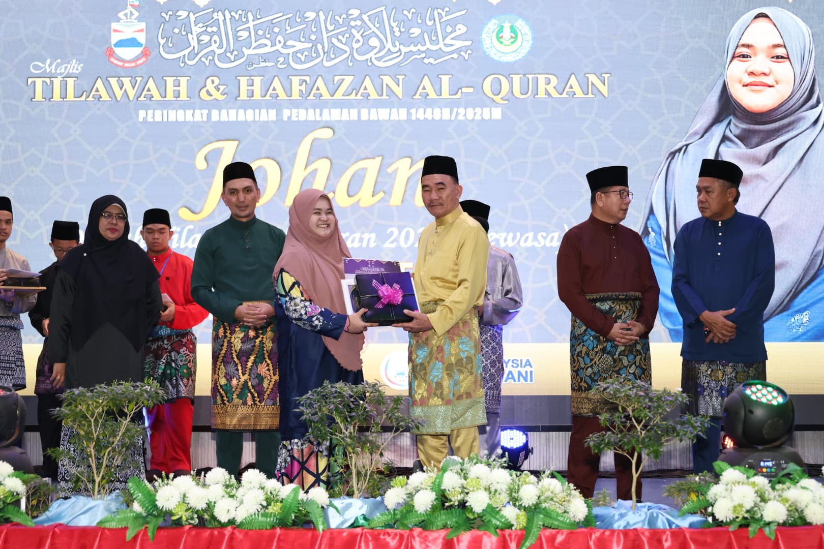 Hafiz dan Nurain masing-masing meraih kejuaraan pada MTHQ Peringkat Bahagian Pedalaman Bawah 2025 yang berlangsung di Dewan Pa’ Musa, di sini malam tadi.