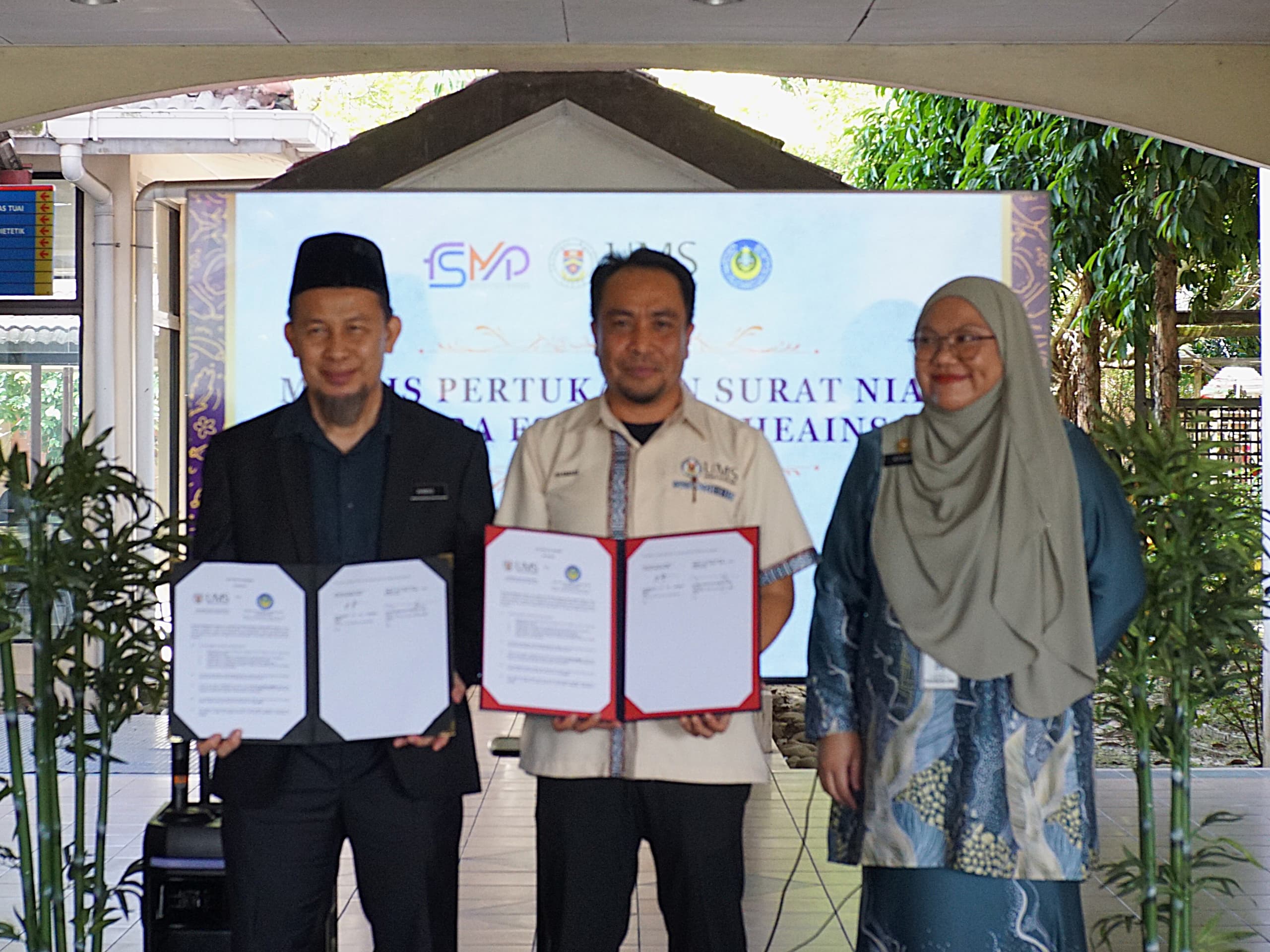 Kota Kinabalu: Universiti Malaysia Sabah (UMS) melalui Fakulti Sains Makanan dan Pemakanan (FSMP) menjalin kerjasama strategik dengan Jabatan Hal Ehwal Agama Islam Negeri Sabah (JHEAINS) menerusi pertukaran surat niat, baru-baru ini.
