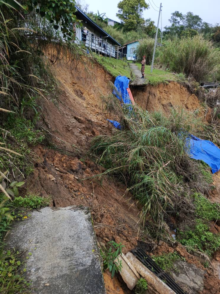Ranau: Satu kejadian tanah runtuh dilaporkan berlaku berhampiran Pejabat KPD Mesilau Kundasang di sini petang semalam.