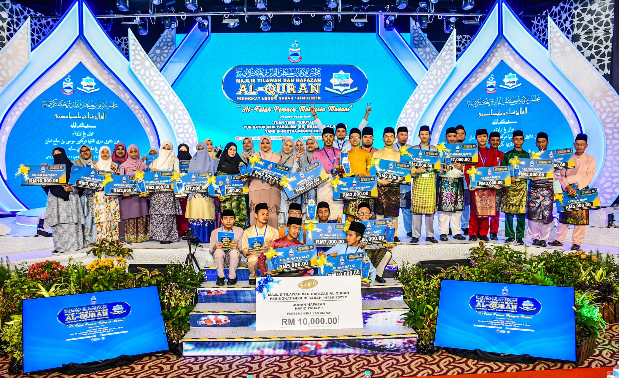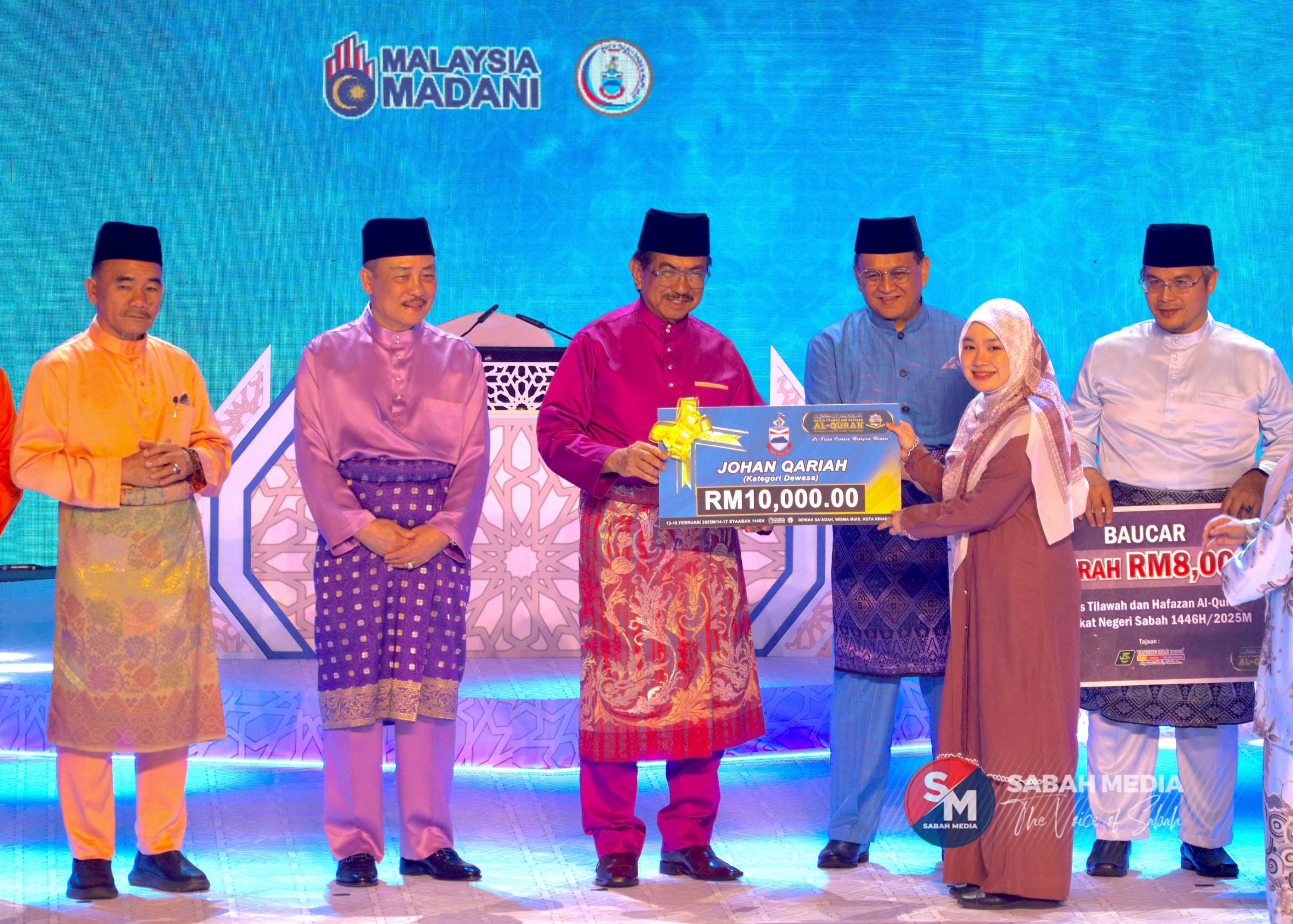 Kota Kinabalu: Qari mewakili daerah Putatan yang juga Johan menunggu, Nashraf Ideen Nahar,32, berjaya mengungguli Majlis Tilawah dan Hafazan Al Quran (MTHQ) Peringkat Negeri Sabah Tahun 1446 Hijrah/2025 Masihi, di sini malam tadi.
