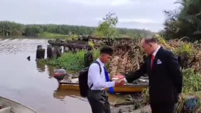 “Pagi ini (semalam) di jeti pekan Weston, saya menanti seorang anak muda yang bersedia melangkah ke alam persekolahan semula. Muhammad Aidil, yang sebelum ini hampir tercicir daripada pendidikan, kini memulakan perjalanan baharu menuju masa depan yang lebih cerah.
