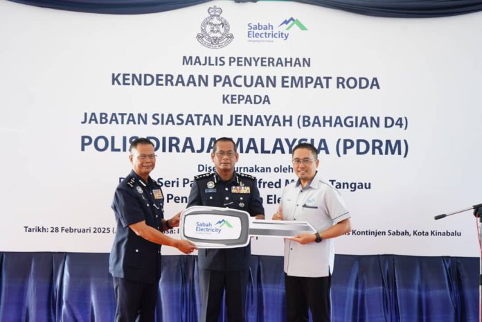 KOTA KINABALU: Sabah Electricity terus memperhebat usaha membanteras kecurian elektrik dengan menyumbangkan sebuah kenderaan pacuan empat roda (4×4) kepada Jabatan Siasatan Jenayah (Unit D4) Ibu Pejabat Polis Kontinjen (IPK) Sabah.