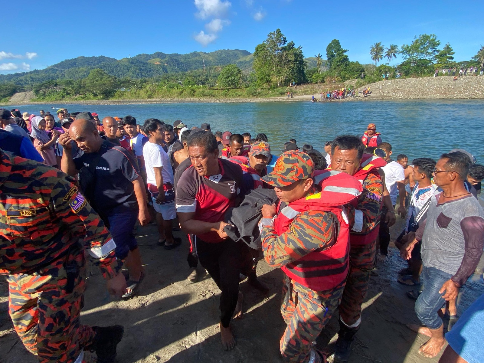Pasukan Bomba bersama penduduk kampung kemudian mengangkat mayat mangsa ke tepi sungai sebelum diserahkan kepada pihak polis untuk tindakan selanjutnya.