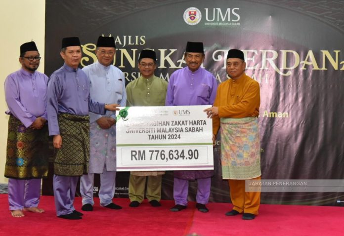 Kota Kinabalu: Majlis Ugama Islam Sabah (MUIS) melalui Bahagian Zakat dan Fitrah menyerahkan agihan zakat sebanyak RM776,634.90 kepada Universiti Malaysia Sabah (UMS).