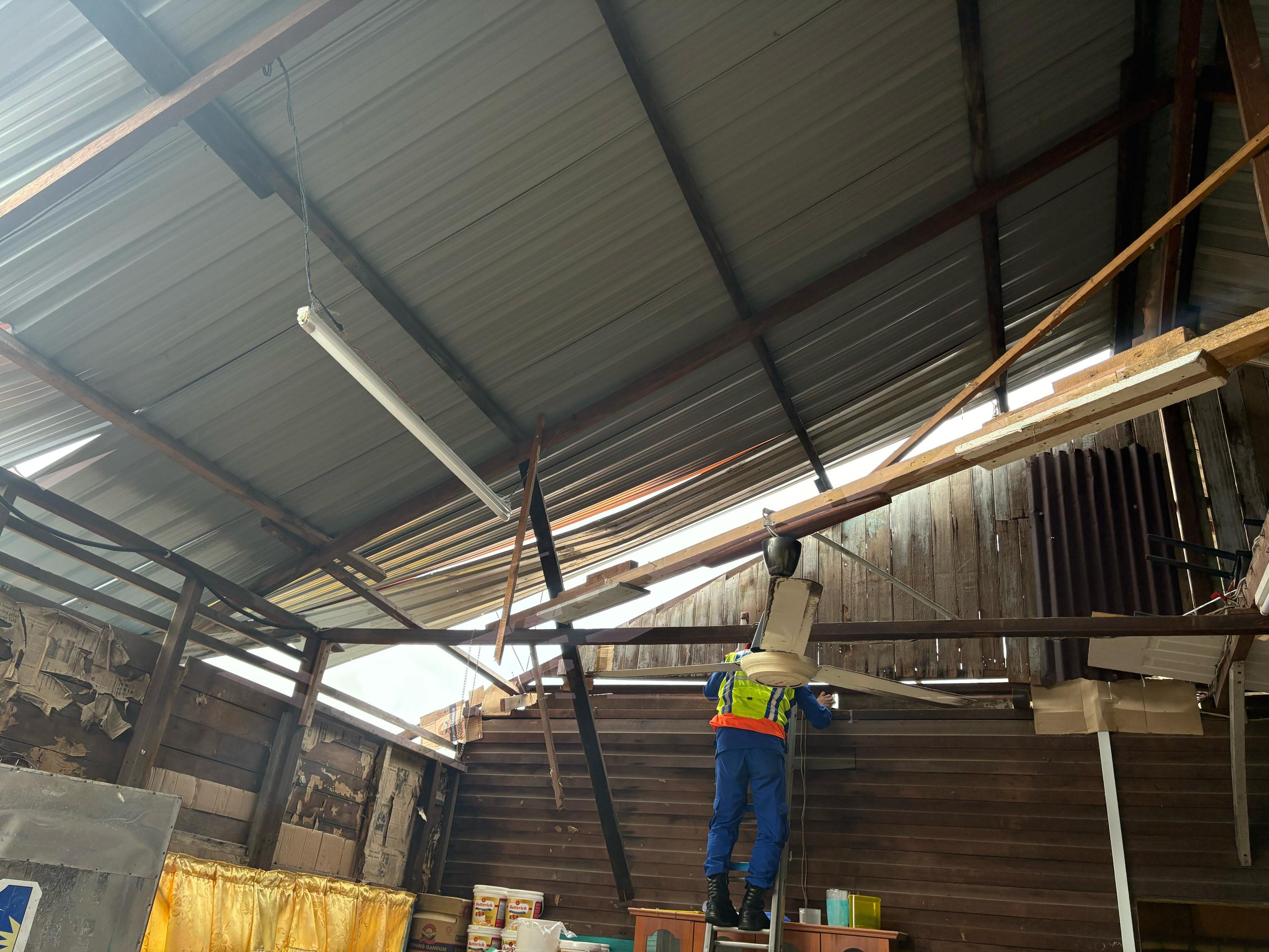 “Kami sedang menyiapkan tempahan kuih raya pelanggan di dapur apabila atap mula berbunyi kuat. Saya dan ibu segera mematikan api dapur dan berlari ke ruang tamu. Dalam sekelip mata, sebahagian atap rumah diterbangkan angin,” katanya.