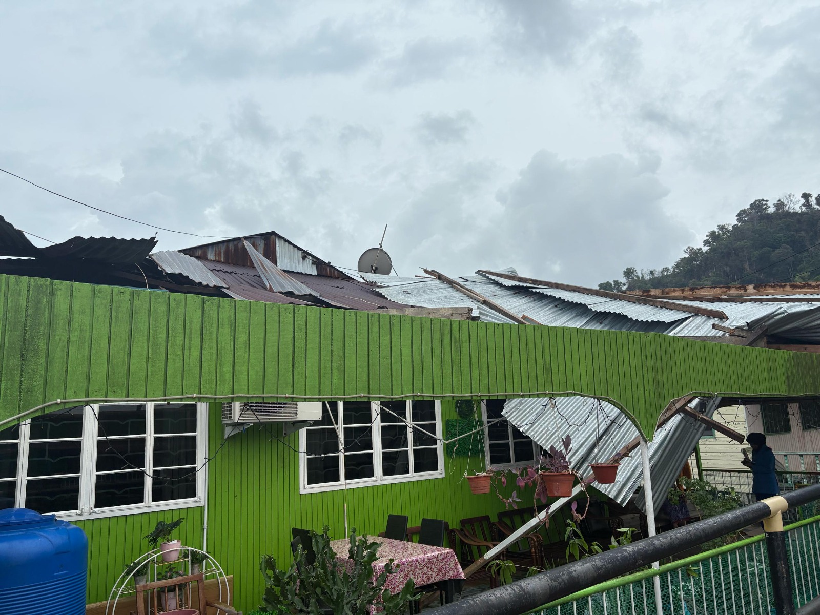 Kejadian puting beliung telah merosakkan rumah lot 46 di Jambatan 4, lot 87 dan lot 79A di laluan Jambatan 5.