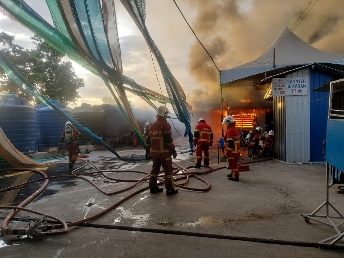 “Kebakaran membabitkan dua struktur separuh kekal bersaiz 20×50 kaki persegi setiap satu.