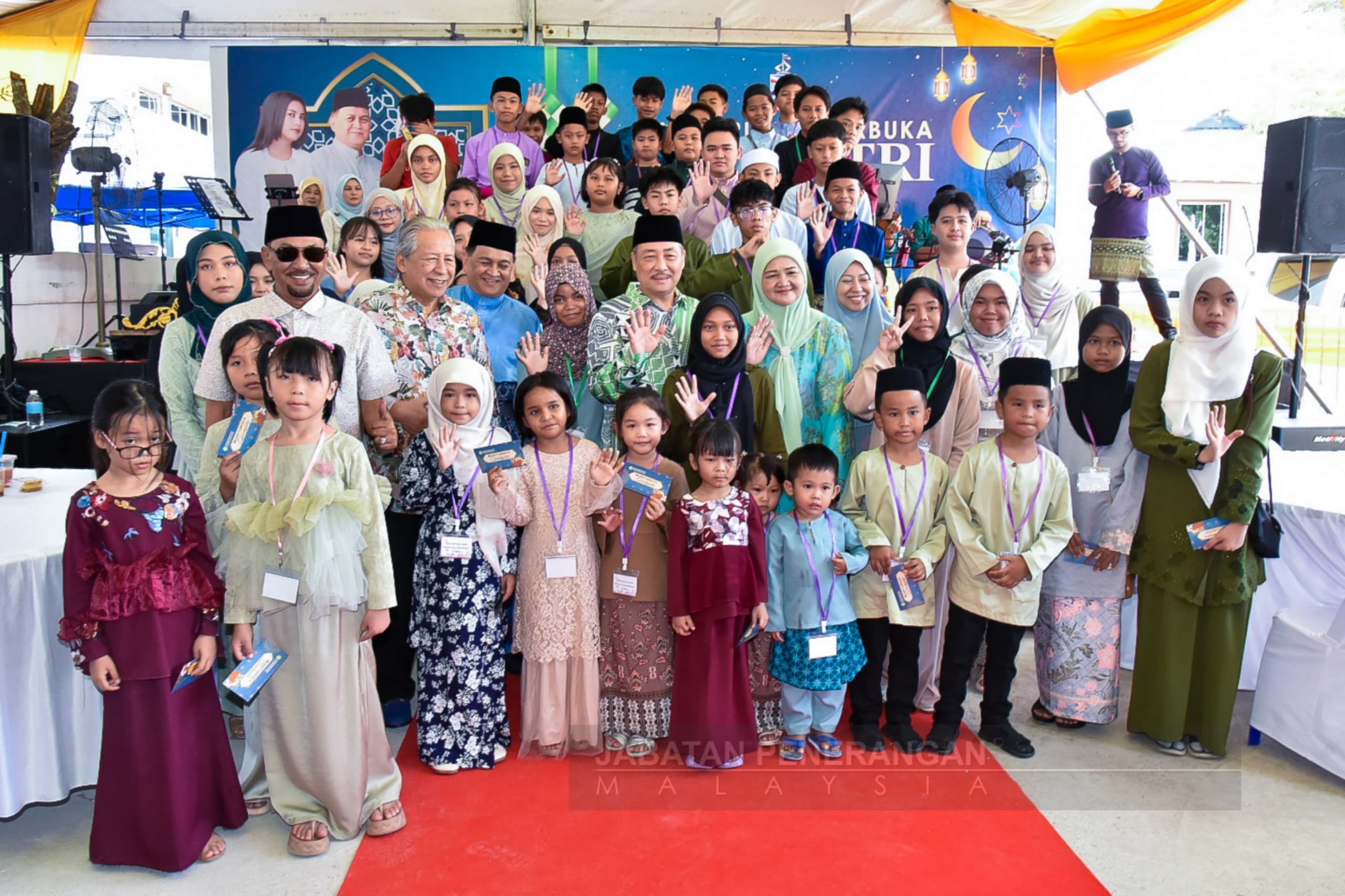 Terdahulu, pada majlis itu, seramai lebih 160 orang kanak-kanak golongan asnaf menerima sumbangan duit raya yang disampaikan masing-masing oleh Tun Musa dan Hajiji.
