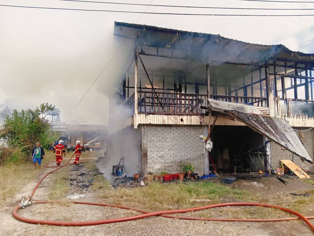 Menurut hantaran tersebut, rumah berkenaan yang didiami pasangan Encik Jacob Supili dan Puan Nelly terbakar kira-kira jam 9.00 pagi. Bahagian tingkat atas kediaman itu yang menempatkan bilik tidur, dokumen penting, barangan elektrik dan pakaian hangus dijilat api.