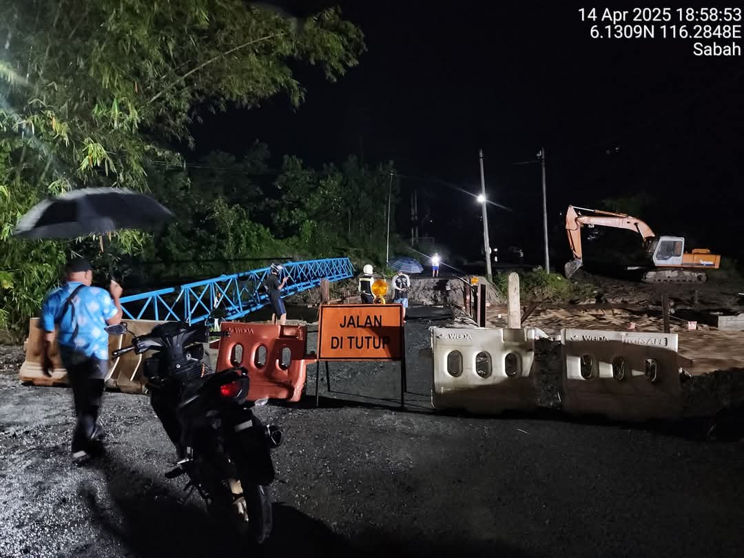 “Namun demikian, kejadian hujan lebat dan banjir pada 14 April lalu telah menghanyutkan separuh daripada jambatan sementara tersebut dan menyebabkan jalan terputus.